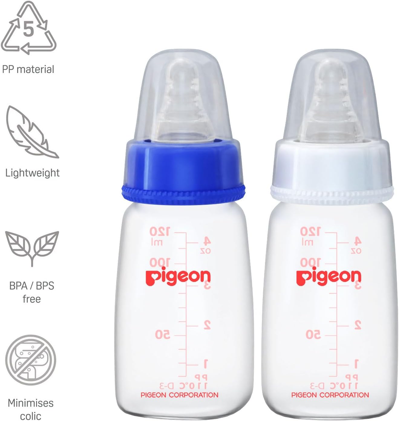 Pigeon Flexible Nursing Baby Feeding Bottle for New Born | Japan’s No.1 Brand | Ideal for 0 Months+ Babies | BPA Free | Anti-Colic | Transparent | Blue and White Colour | 120ml | Pack of 2 is crafted for everyday baby care. Designed with safety and comfort in mind, it supports proper hygiene and practical parenting needs.