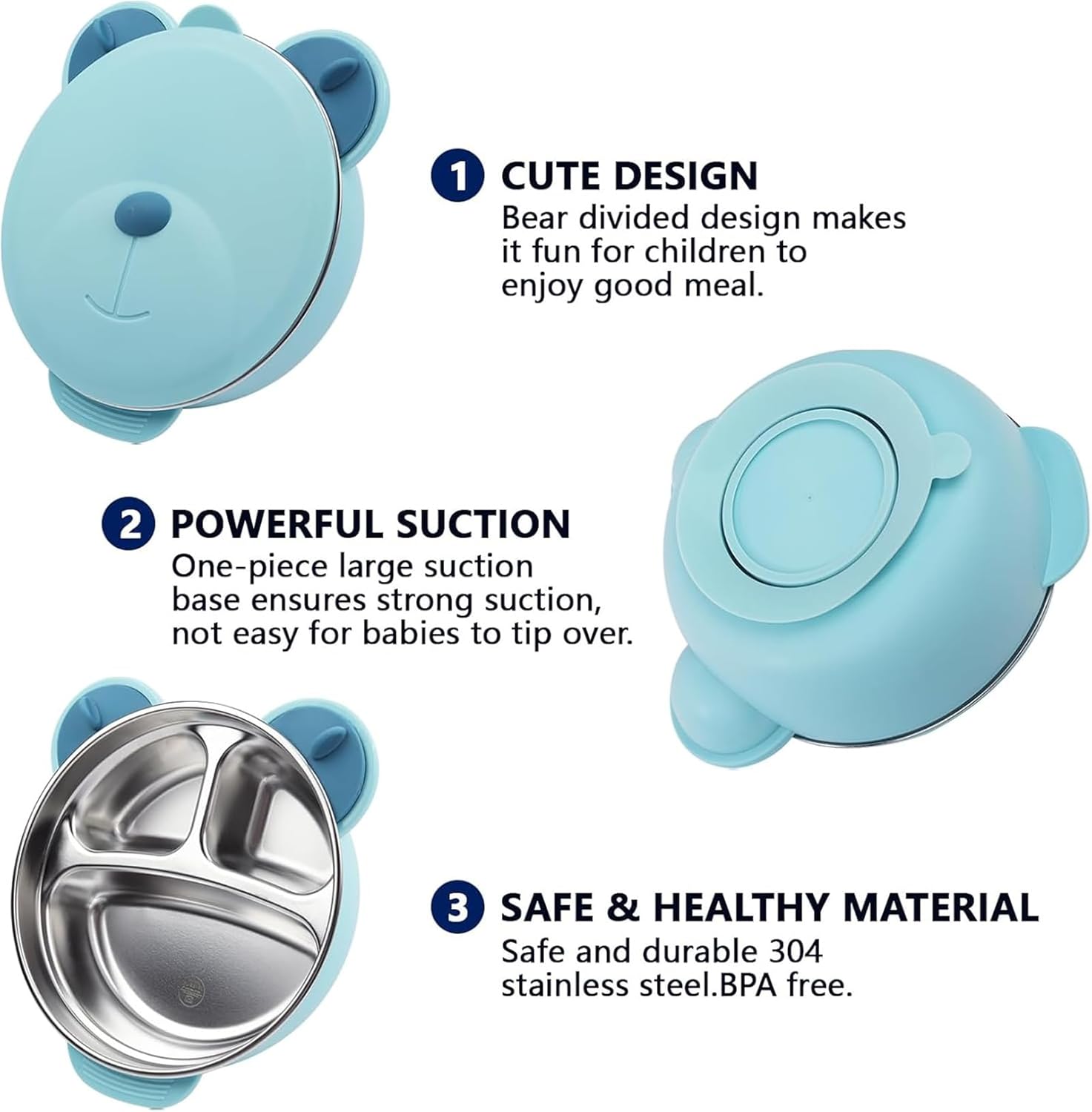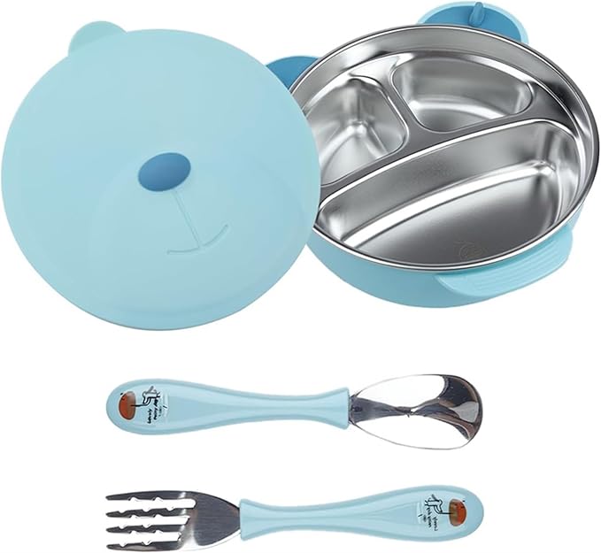 MOTIM Stainless Steel Baby Feeding Bowl, Toddler Suction Plate with Lid Spoon and Fork, BPA Free Easy to clean for Baby Toddler (Blue) is crafted for everyday baby care. Designed with safety and comfort in mind, it supports proper hygiene and practical parenting needs.